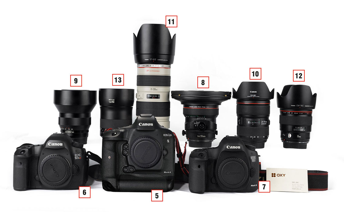 [10] Canon 24-70mm f2.8 LII và [11] Canon 70-200mm f2.8 LII là hai ống kính đa dụng cao cấp của Canon được thế giới nhiếp ảnh đánh giá rất cao về chất lượng.